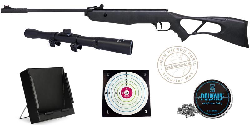 Composed of the CROSMAN Inferno rifle, with a modern design with its skeleton stock, and a power of 10 Joules. Ready to shoot, it is delivered with a 4x20 scope, a pellet trap, 100 targets and 500 pellets.