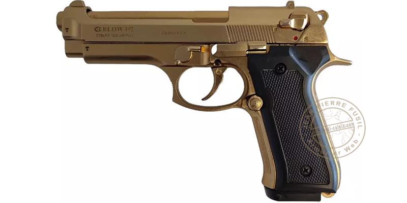 The BLOW F92 uses defence ammos, in 9 mm PAK bore :