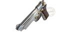 With a chromium finish, various golden elements take place as the trigger, the hammer, other buttons, and also light engravings.