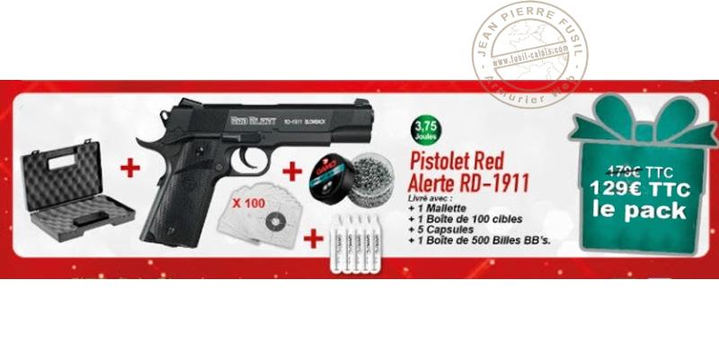 Modern replica of the famous Colt 1911, manufactured by Gamo, the Red Alert RD-1911 is a semi-automatic pistol, in .177 BB bore, with a CO2 propulsion.