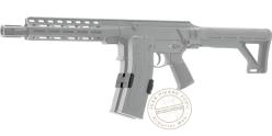 The magazine connector makes it easy to connect two T4E TC 68 magazines for quick reloads during a match. The magazines click into place at the same height. They can be individually moved by means of a rocker, making reloading much easier.