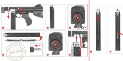 Son chargeur droit a une capacité de 30 billes BB, et comprend également le logement des cartouches de CO2 (2). Il s'emboîte facilement dans son emplacement, et se retire en soulevant le levier situé sur le pontet, sur la gauche de l'arme.