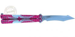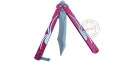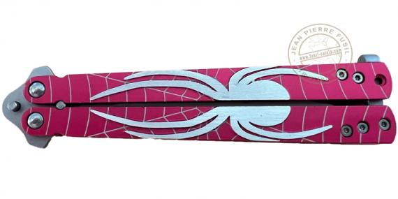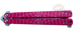 MTECH - Couteau papillon rose motif araignée